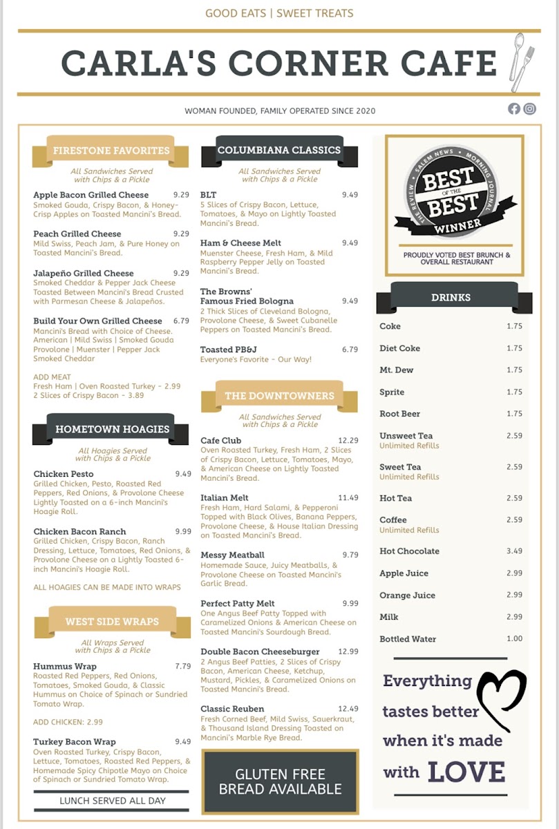 Welcome to Carla's Corner Cafe, a delightful eatery tucked away at 103 S Main St, Columbiana, OH. Known for its vibrant and cozy atmosphere, this cafe serves up a menu that strikes a perfect balance between comfort food and local flair.